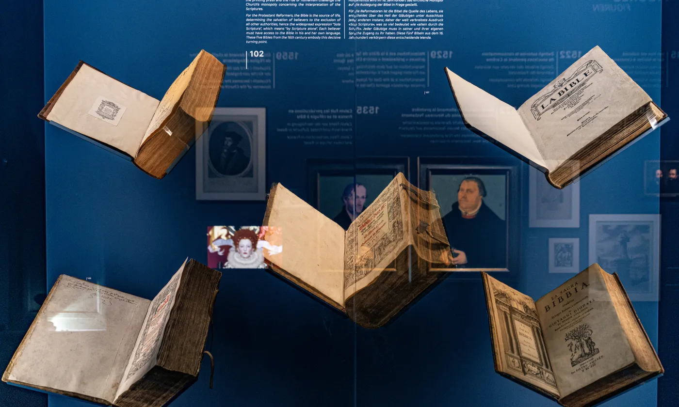 Pendant 45 minutes, découvrez l’importance des écrits en langue italienne dans l’exposition permanente du musée. Explorez la Bible de Diodati, le Catéchisme de Calvin, et l’œuvre contemporaine «Jésus lave plus blanc» de Bruno Ballardini.