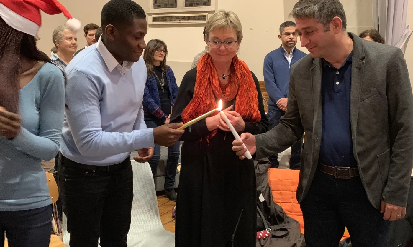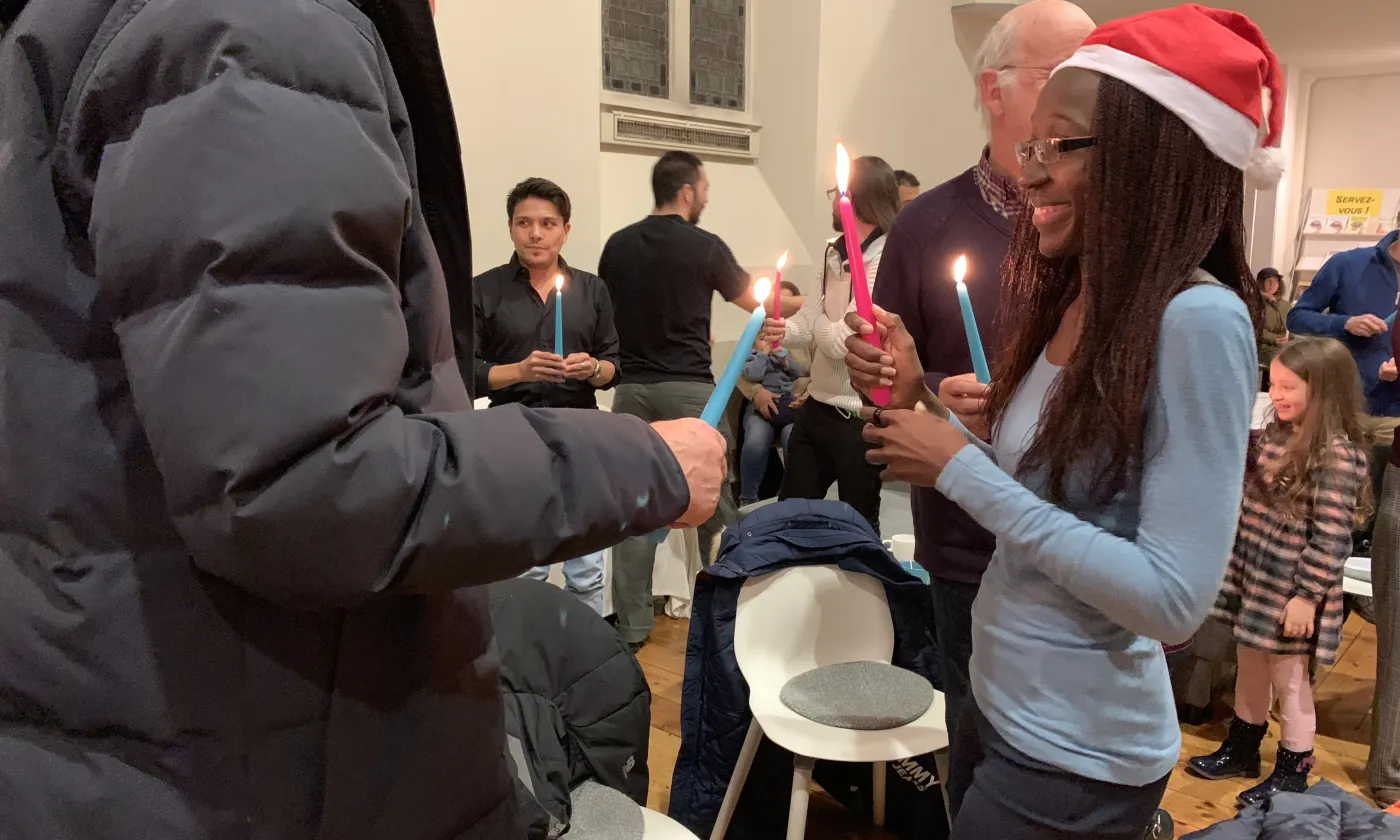 ©Myriam BettensLa pasteure Carolina Costa présidait le culte ©Myriam Bettens ©Myriam BettensChacun reçoit une bougie dont la mèche est allumée par une autre personne. ©Myriam BettensChacun reçoit une bougie dont la mèche est allumée par une autre personne. ©Myriam BettensChacun reçoit une bougie dont la mèche est allumée par une autre personne. ©Myriam BettensToute célébration de Noël se doit d’avoir une crèche L'affiche de l'événement Previous Next églisesJésus de Bethléem requérant d'asile Myriam Bettens17 décembre 2018Le temple de Plainpalais à Genève accueillait dimanche une relecture de la Nativité sous l’angle de la fuite et de la migration. Invités, les requérants d’asile et les réfugiés étaient mis à l’honneur.